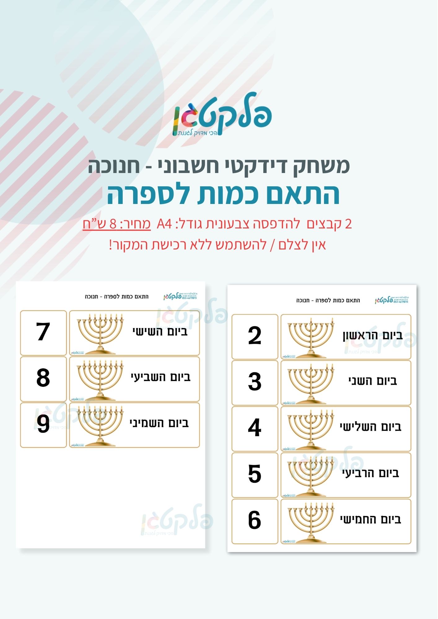משחק דידקטי חשבוני חנוכה קבצים להדפסה